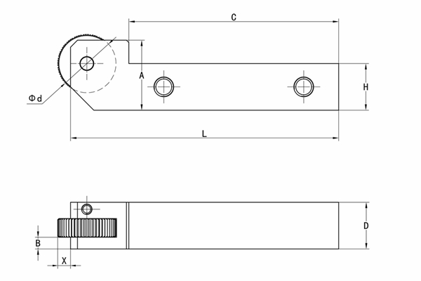 工具型號 安裝方向 加工范圍 適配滾花輪尺寸 刀桿尺寸 X